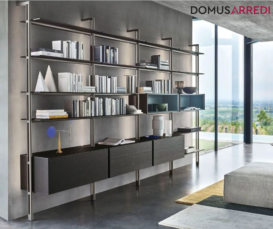 Cod.10263 - Sistema a giorno Itala – San Giacomo Sistema a giorno con pali montanti fissati a parete o soffitto, dal design essenziale e contemporaneo. Il modello Itala di San Giacomo combina struttura in metallo, mensole e contenitori sospesi per una composizione elegante e modulare, ideale per living e studi moderni.In vendita da Domus Arredi – Lissonet. 039 794790