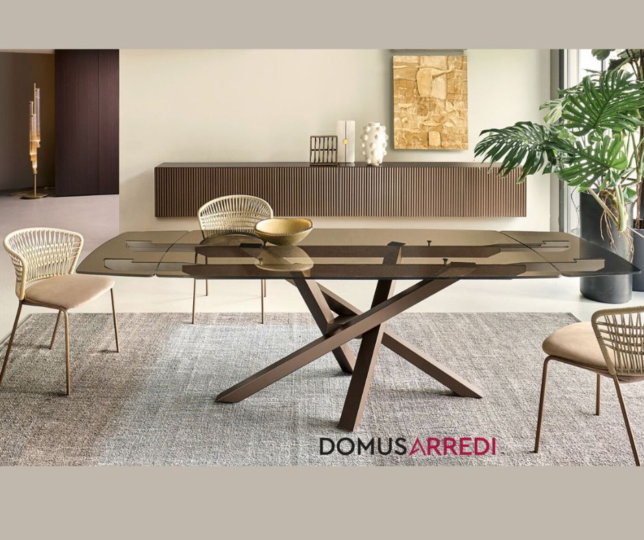 Cod.10805 - Il tavolo Shangai di Riflessi offre innumerevoli soluzioni cromatiche per meglio addattarsi al living contemporaneo; gusto raffinato ed esclusivo. La sedia Soffio in corda nautica intrecciata a mano e la madia sospesa Onda completano il tutto. Preventivi personalizzati scrivendo a info@domusarredilissone.it.