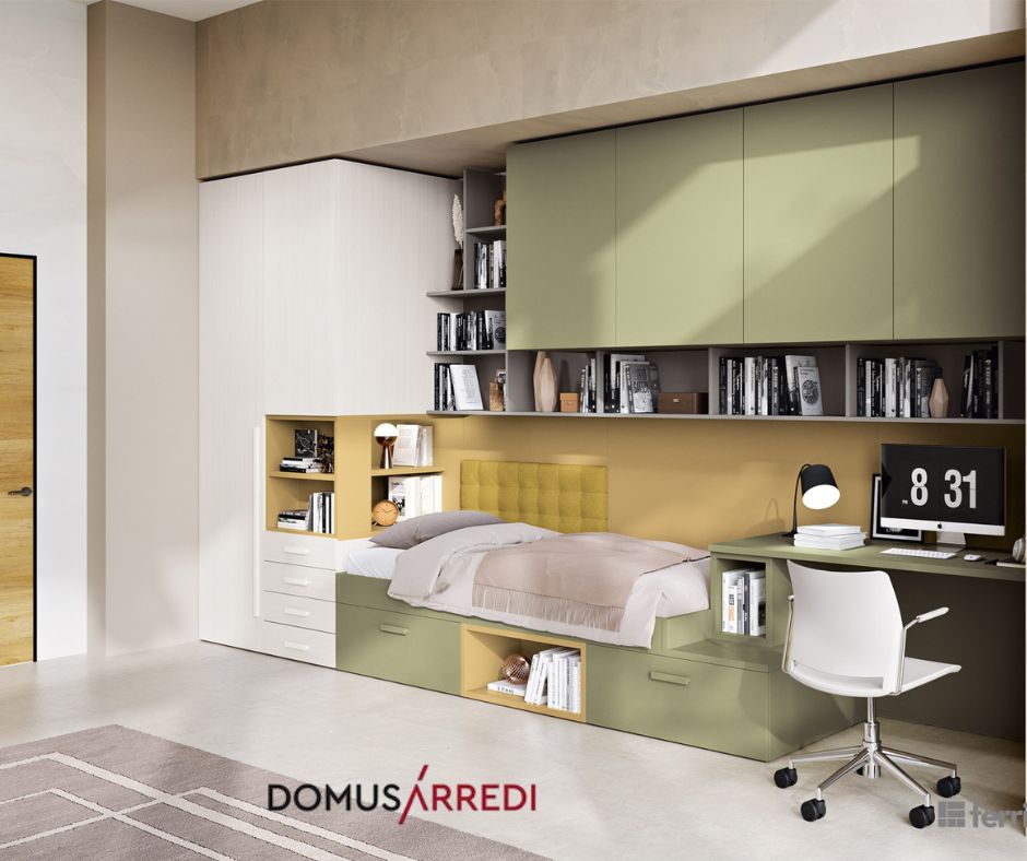 Cod.11435 - Cameretta Ferri Mobili dal design contemporaneo con letto contenitore, armadiatura a ponte e zona studio integrata. Le tonalità naturali e i moduli libreria creano un ambiente armonioso e funzionale. In vendita da Domus Arredi, Lissone (MB), via Pascoli 39 – tel. 039 794790.Scrivendo a info@domusarredilissone.it ti invieremo il preventivo personalizzato