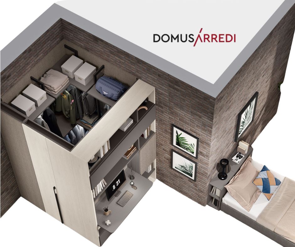 Cod.11898 - Cameretta Ferri Mobili con cabina armadio integrata, perfetta per mantenere ordine e ottimizzare gli spazi con stile. Zona studio compatta e funzionale sotto l’armadiatura, ideale per ragazzi e adulti. Acquistabile da Domus Arredi, Lissone – Via Pascoli 39, tel. 039 794790. Per ricevere un preventivo scrivi a info@domusarredilissone.it